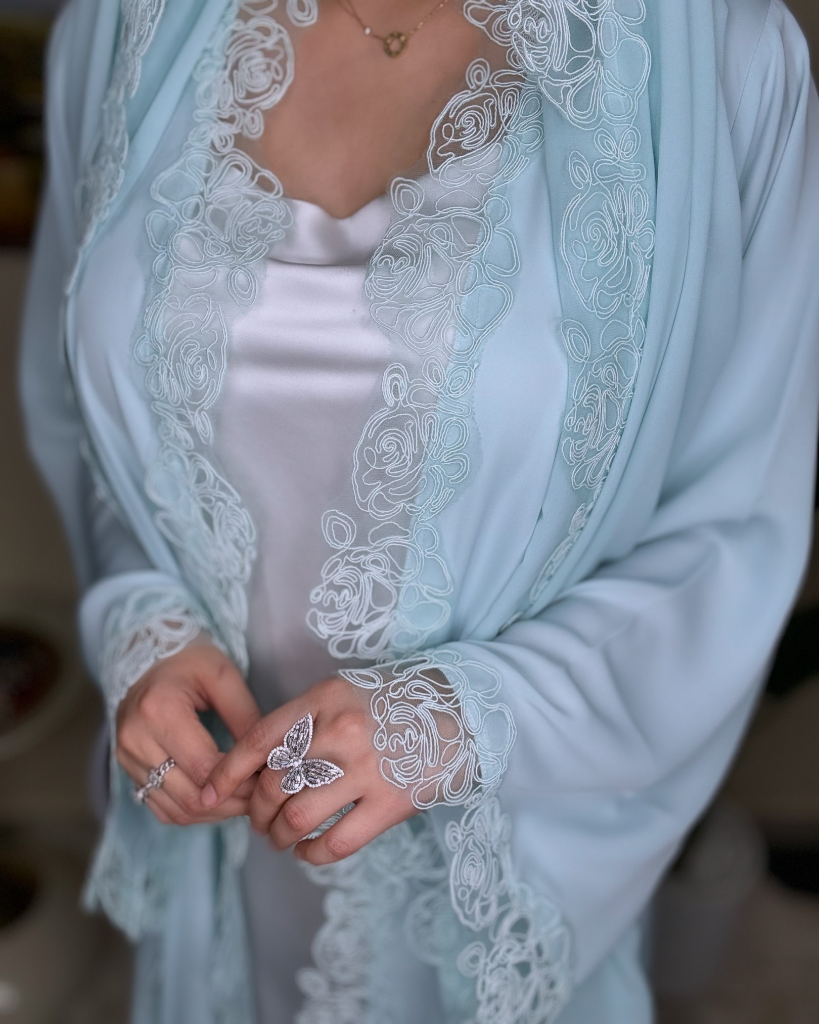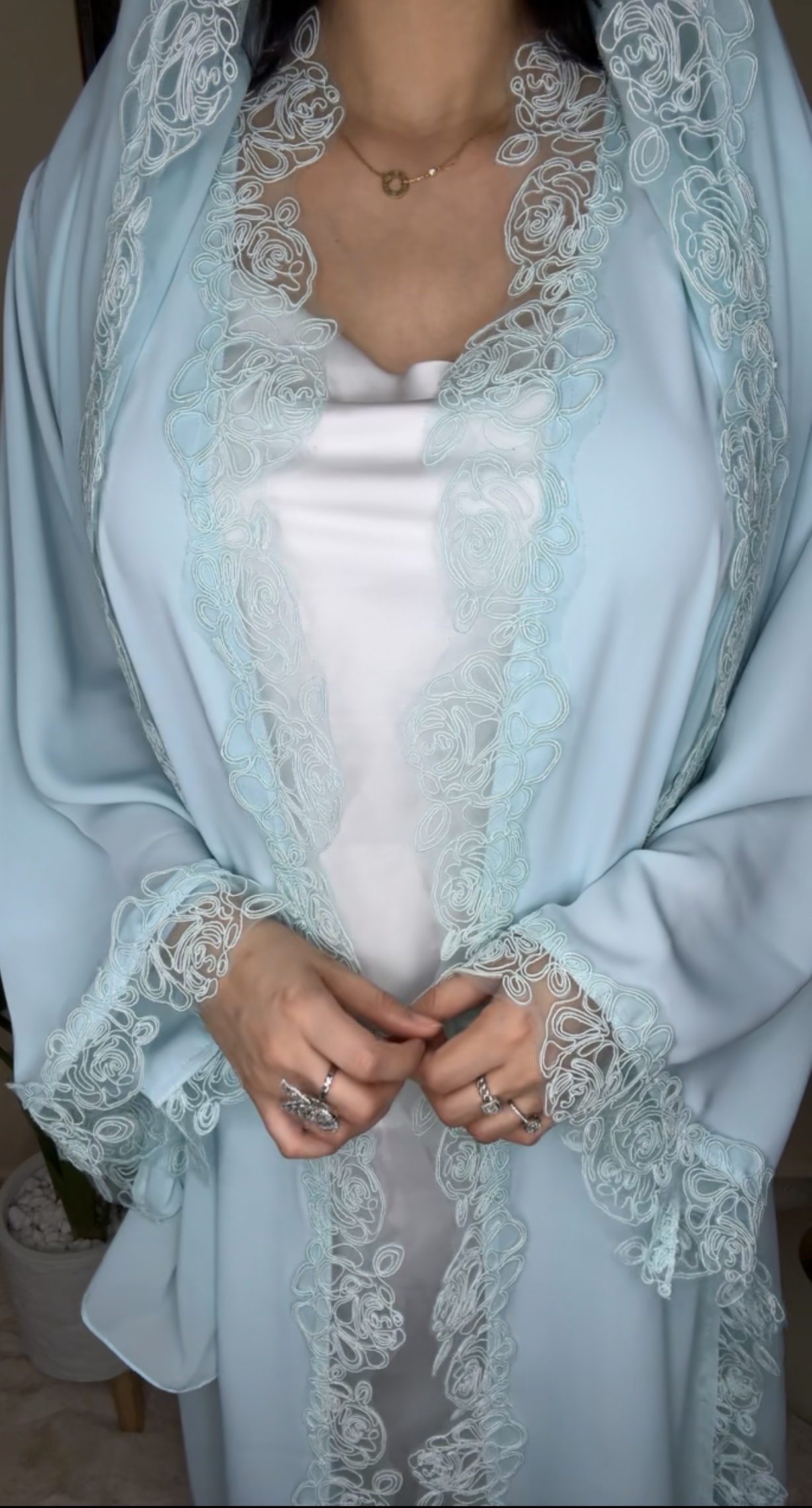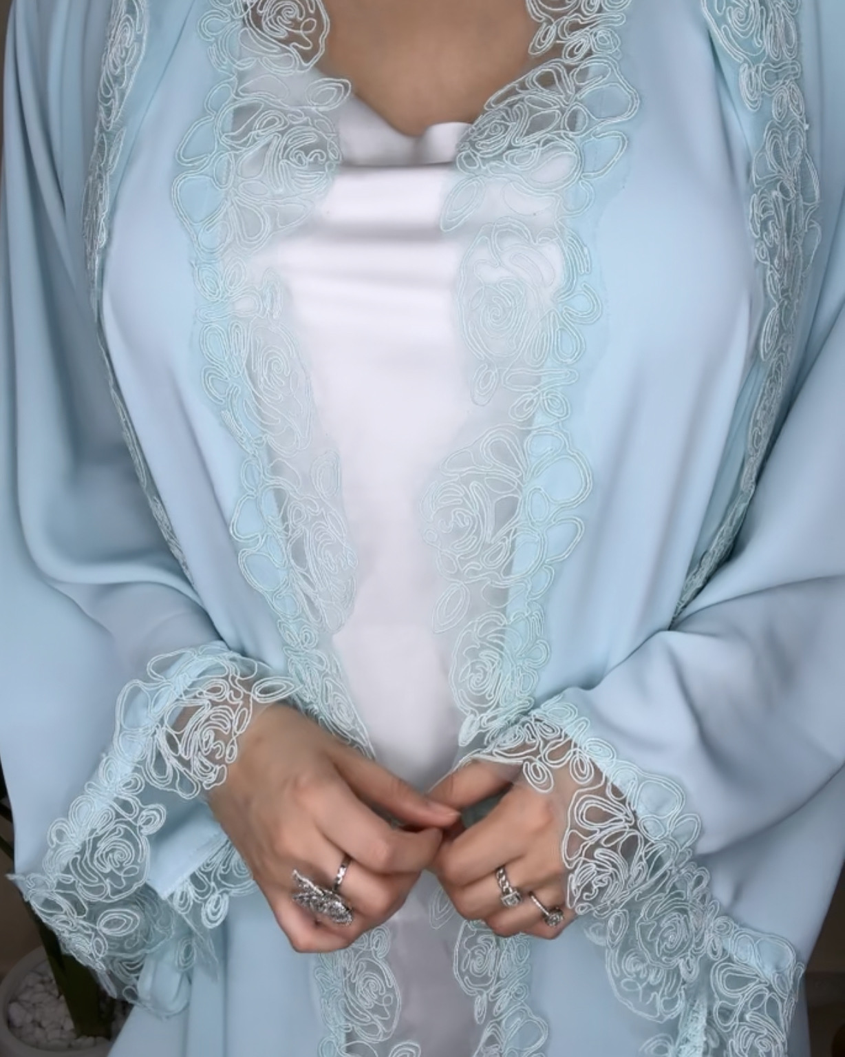 | Size | length - الطول (in) | Bust - الصدر (in) | Sleeve - طول الكم (in) |