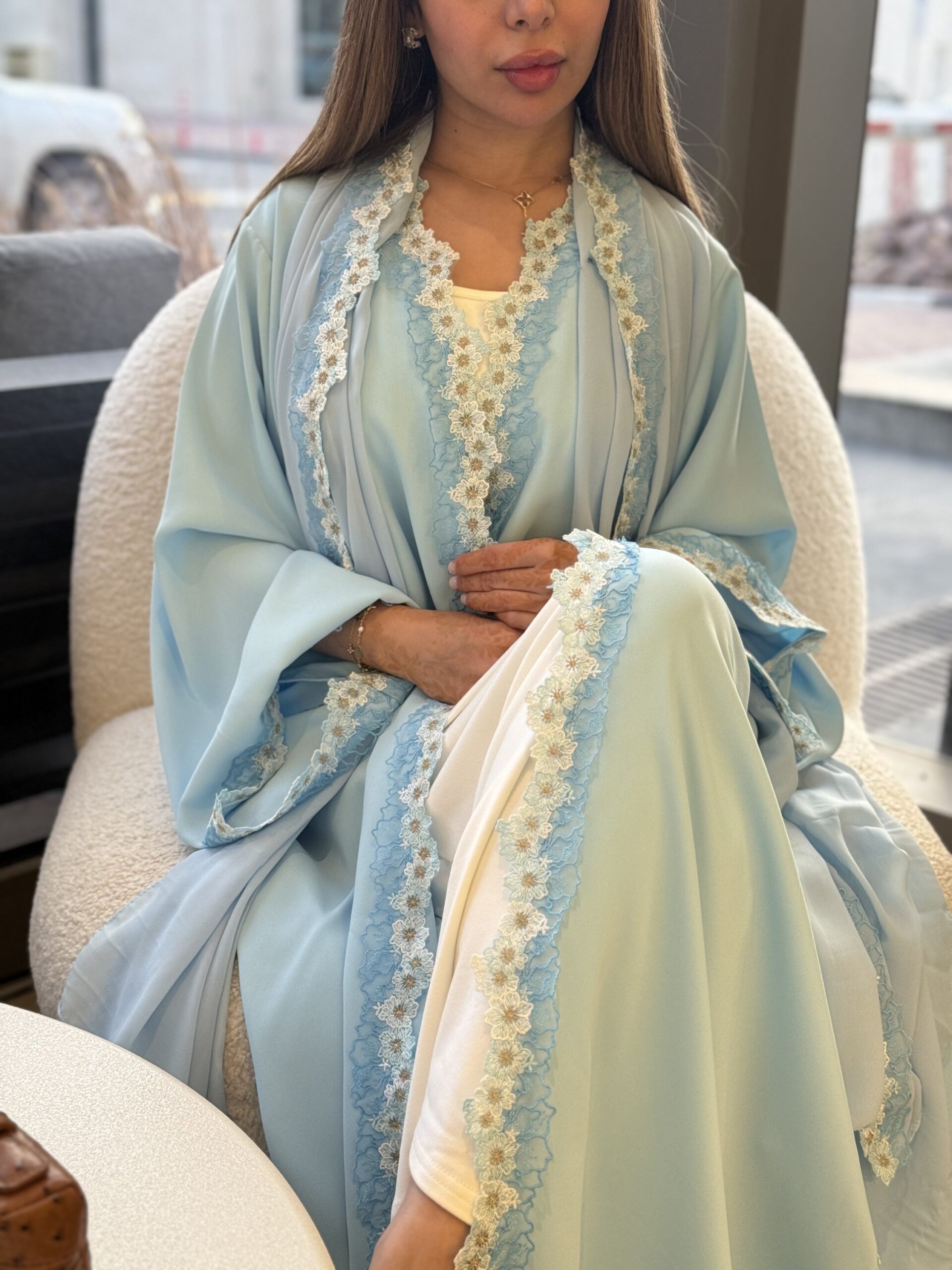 | Size | length - الطول (in) | Bust - الصدر (in) | Sleeve - طول الكم (in) |