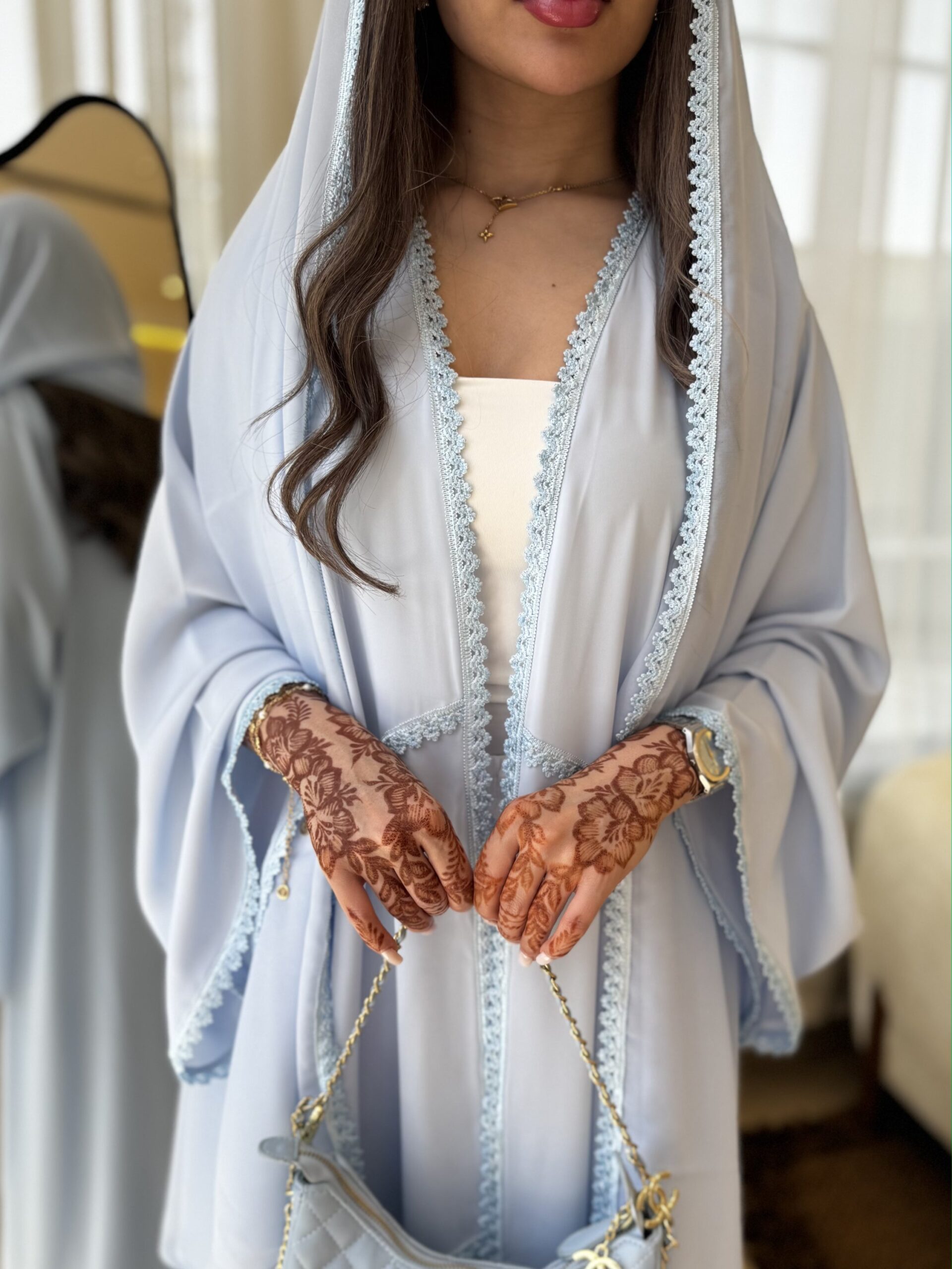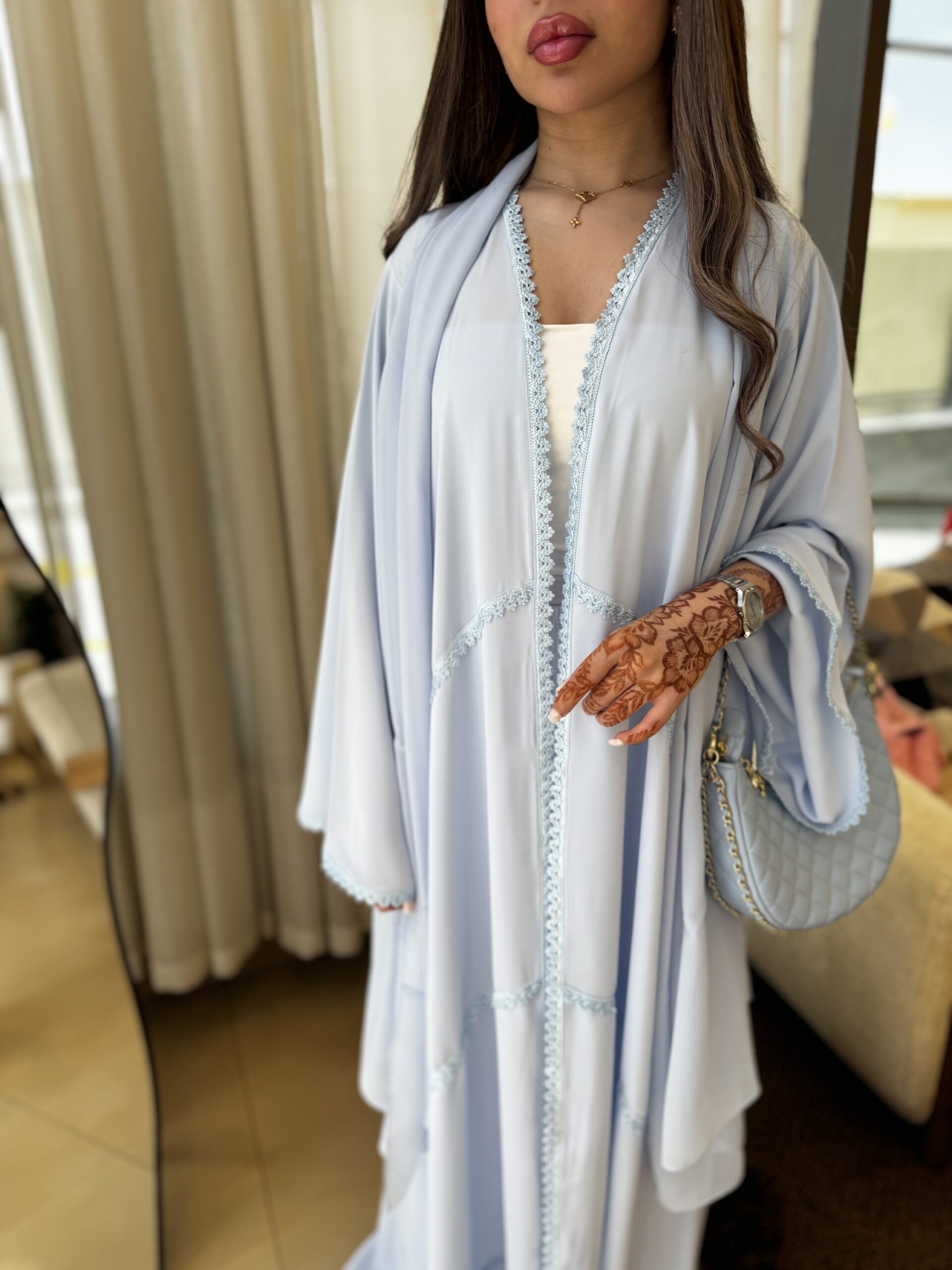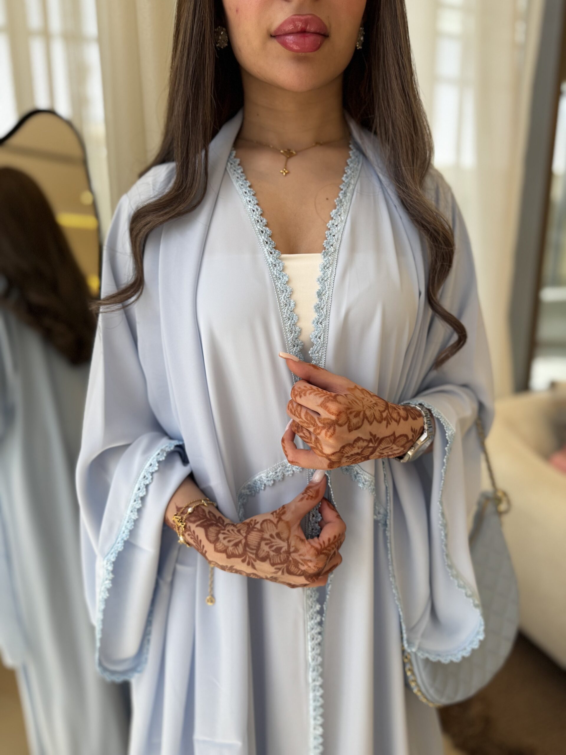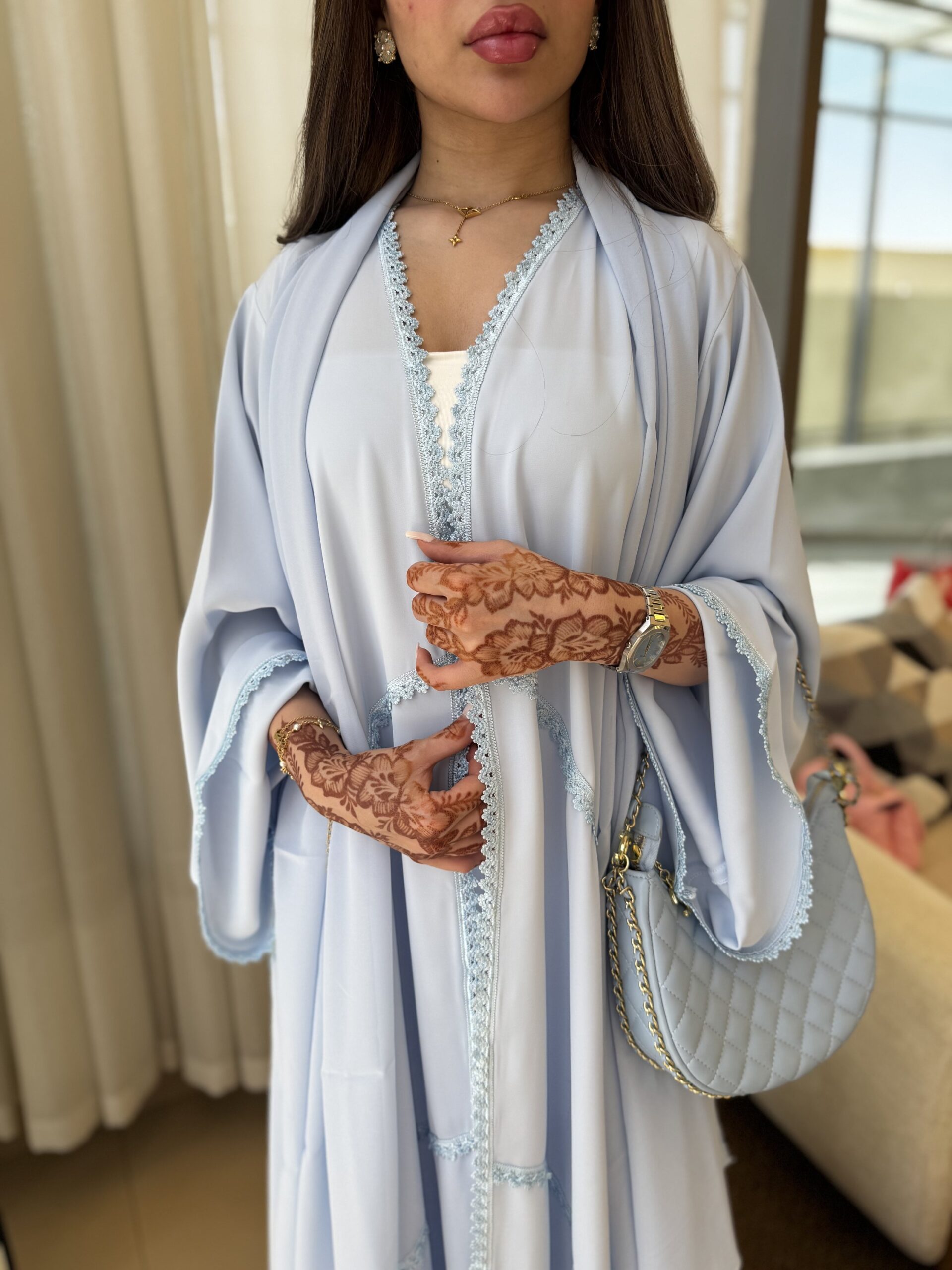 | Size | length - الطول (in) | Bust - الصدر (in) | Sleeve - طول الكم (in) |
